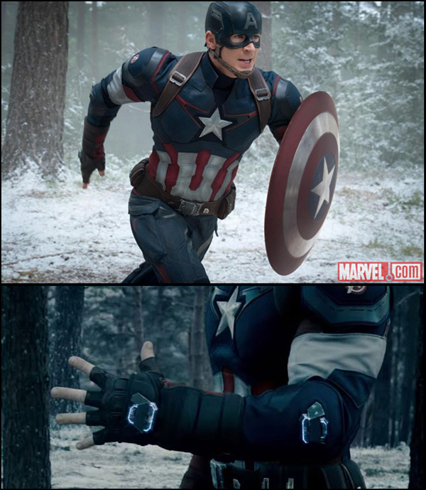 เพราะคราวนี้เขาสามารถเก็บโล่ประจำกายเข้าที่ได้ผ่านการสั่งด้วยเสียง ส่วนคุณสมบัติที่เพิ่มเข้ามาคือแม่เหล็กที่ช่วยยึดโล่ให้ติดกับข้อมือของเขาโดยง่าย ทำให้กัปตันสุดหล่อไม่ต้องแขวนโล่ไว้บริเวณหลังอีกต่อไป
