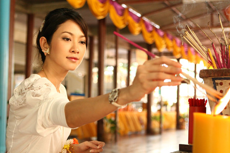 ยุ้ย-จีรนันท์ หวั่นอาถรรพ์นางตะเคียน รีบไปทำบุญ ถวายชุดให้แม่ย่าตะเคียนที่อยุธยา (Pacific Island Films)