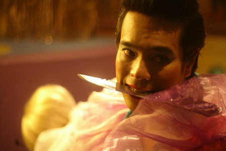กระเทยสองหน้า ฝั่งขวาชายฝั่งซ้ายหญิง มีบุคลิกแปลกแยก พูดจาเดี๋ยวหญิงเดี๋ยวชาย ซ้ำร้ายมีอดีต ยามเด็กถูกคนรังเกียจ จนผู้เป็นบิดาต้องเอาไปลอยทะเลทิ้ง จึงมีแค้นฝังใจกับทุกคนที่ไม่ใช่กระเทย หมายมั่นว่าจะฆ่ามันให้หมดทั้งชายและหญิงจนเหลือแต่เพศกระเทยเท่านั้น เพื่อครองโลกนี้ และเปลี่ยนมันให้เป็นโลกกระเทย