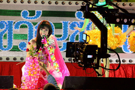 "เป็นอีกหนึ่งฉากสำคัญในเรื่องครับ เป็นฉากเปิดตัวครั้งแรกของ คุณพุ่มพวง ดวงจันทร์ บนเวทีคอนเสิร์ตกับบทเพลง "สาวร้อยเอ็ด" ต่อหน้าบรรดาแฟนเพลงที่มาเฝ้ารอฟังน้ำเสียงอย่างใจจดใจจ่อ และคุณพุ่มพวงเองก็เกิดอาการตื่นเต้นมากจนขาสั่น แต่สุดท้ายก็สามารถสะกดอารมณ์คนดูให้ทึ่งไปกับน้ำเสียงของเธอได้ครับ โดยมีคุณธีรพลยืนเป็นกำลังใจให้อยู่ด้านข้างของเวที ต้องบอกว่าฉากนี้จะเป็นก่อนที่ช่วงชีวิตกำลังจะโด่งดังแบบสุดขีดของคุณพุ่มพวง เพราะยังเป็นลูกวงของคุณขวัญชัย เพชรร้อยเอ็ดอยู่ในตอนนั้น ส่วนเวทีคอนเสิร์ตวันนี้อลังการงานสร้างมากครับ มีทั้งหางเครื่องเต็มวง นักดนตรีเครื่องเป่าต่าง ๆ แสง สี ไฟพร้อมหมดครับ นอกจากฉากคอนเสิร์ตของคุณพุ่มพวงครั้งแรก ก็ยังมีถ่ายฉากคอนเสิร์ตอื่น ๆ ไปด้วยครับ วันนี้น้องเปาจะเหนื่อยหน่อยต้องโชว์พลังเสียงแบบสด ๆ หลายเพลง และยังต้องแต่งชุดนักร้องลูกทุ่งหลากหลายชุด เรื่องการออกแบบเสื้อผ้าแต่ละชุดรับรองว่าสวยงามมากครับ ส่วนพี่ป๋อด้วยความที่เขาหล่อเกินผมก็พยามฉุดดึงเขาให้ดูเป็นหนุ่มลูกทุ่งแต่ก็ยากเหลือเกินครับแต่งชุดอะไรก็ดูหล่อไปหมดเลย (หัวเราะ) และยังจะได้เห็นพี่ป๋อโชว์พลังเป่าแซกโซโฟนในเรื่องนี้ด้วยนะครับ ยังไงก็ติดตามชมนะครับ อยากให้คุณผู้ชมที่ชื่นชอบและรักในตัวของคุณพุ่มพวงมาชมภาพยนตร์เรื่องนี้ ชมด้วยใจที่มีความสุข สำหรับคนที่มีความฝันอยากหากำลังใจ และหาแรงบันดาลใจผมว่าหนังเรื่องนี้เป็นแรงบันดาลใจให้กับคนที่มีความฝันได้เป็นอย่างดีแน่นอนครับ"