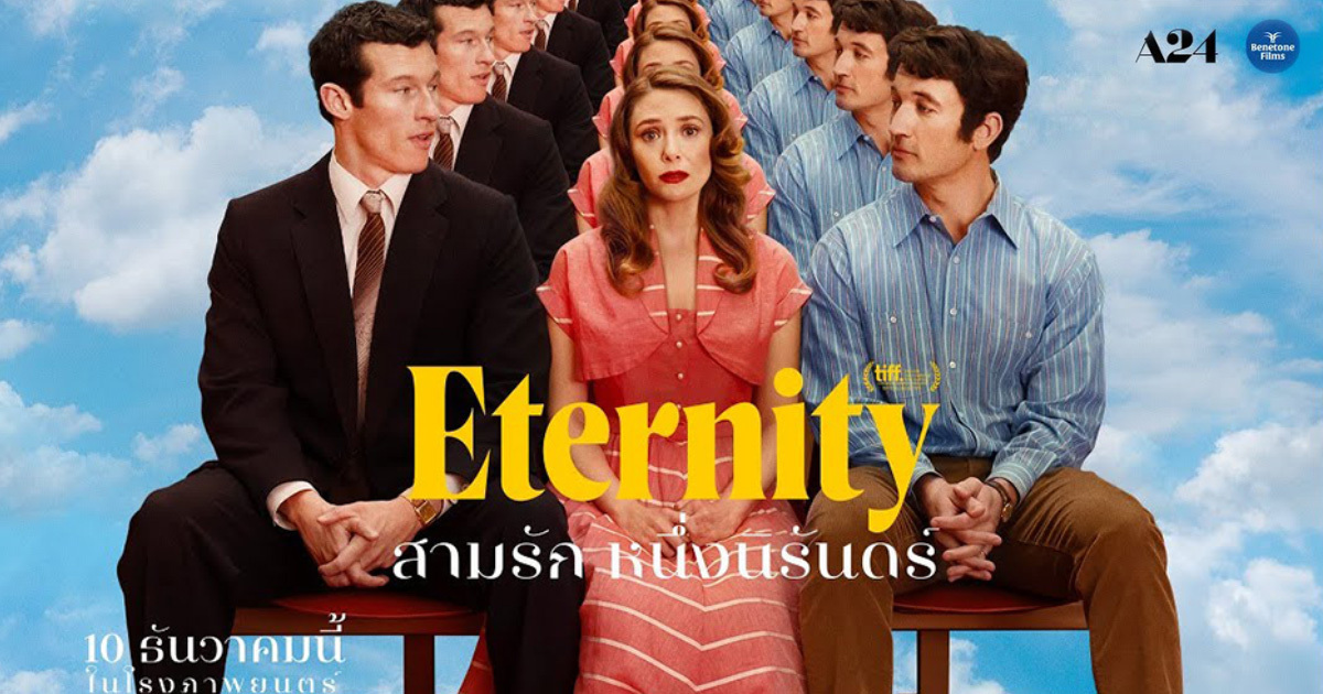 เตรียมพบกับคำถามรักนิรันดร์ที่คงไม่มีใครอยากตอบ A24 ค่ายหนังดังระดับโลกปล่อยโปสเตอร์และตัวอย่างแรกของ Eternity สามรัก หนึ่งนิรันดร์ หนังรักโรแมนติกคอมเมดี้แนวแฟนตาซีที่จะพาเราไปตอบคำถามว่า "ถ้าต้องเลือกคนที่จะอยู่ด้วยตลอดกาลในโลกหลังความตาย คุณจะเลือกใคร ?" พร้อมแล้วหรือยังที่จะร่วมเดินทางไปกับ Elizabeth Olsen สาวสวยจาก MCU ที่ต้องมาเจอกับดราม่ารักสามเส้าสุดปั่นป่วนในโลกหลังความตาย