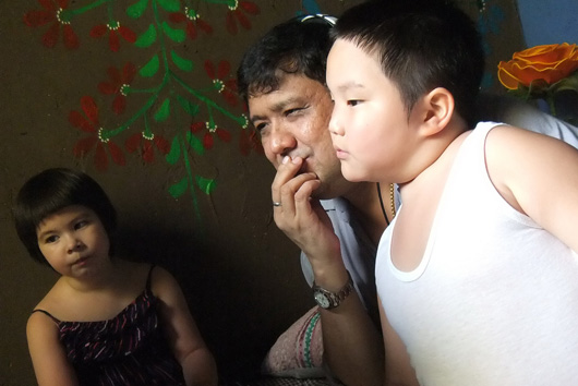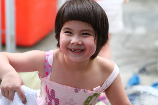 T. (กระซิบ) ตอนนี้น้องเขากำลังร้องไห้อยู่ เขากำลังนอนอยู่ ก็สนุกมากเลยครับ น้องพูดเก่งมากครับ ดื้อด้วย (กระซิบ) น้องชอบใส่ชุดสีชมพู ใส่แว่นด้วย